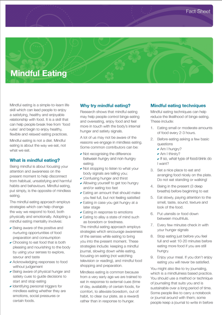 Examples of mindful eating practices highlighted in the resource include:
