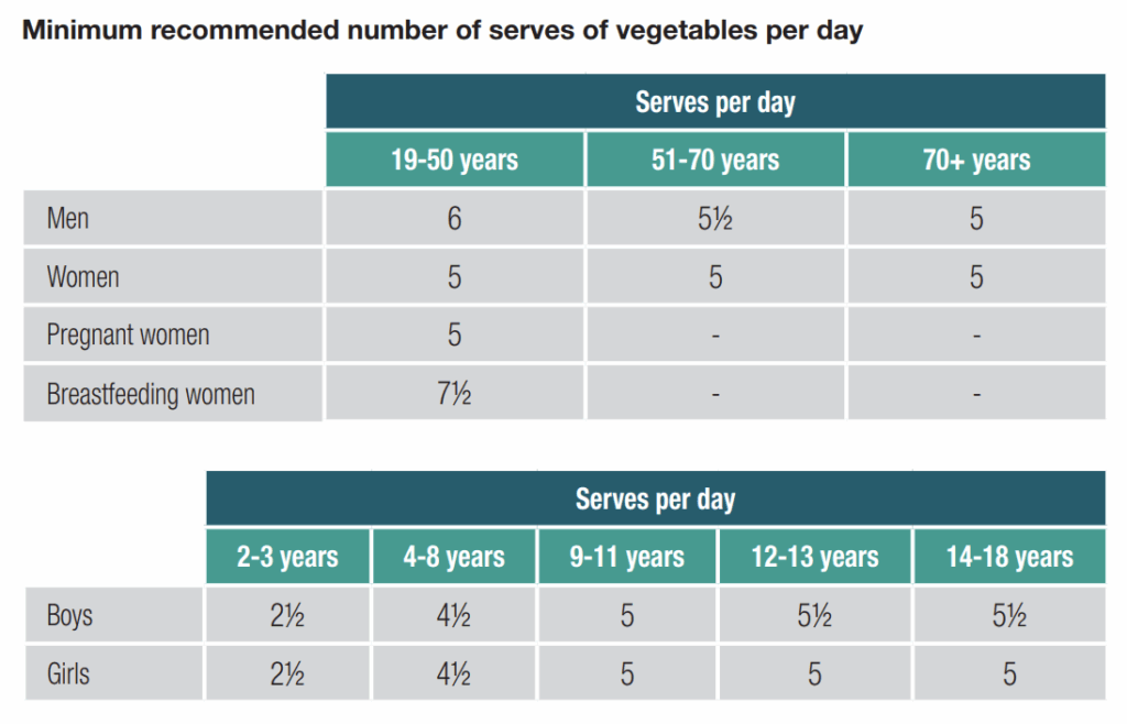 - ½ cup cooked green or orange vegetables eg. broccoli, spinach, carrots or pumpkin